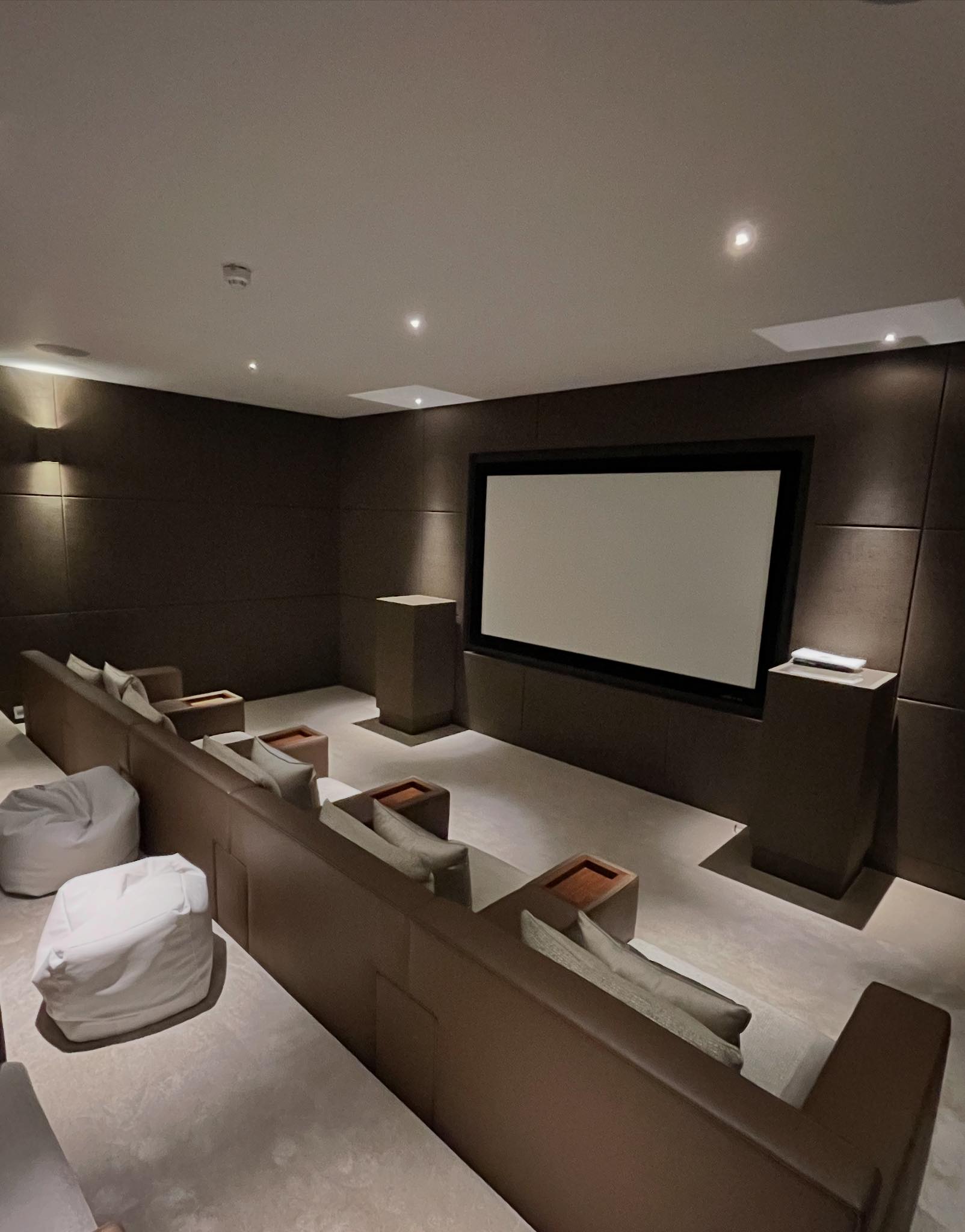 Immersive 4K/8K theaters with Dolby Atmos sound, acoustic treatment, and smart lighting that rivals commercial cinemas.